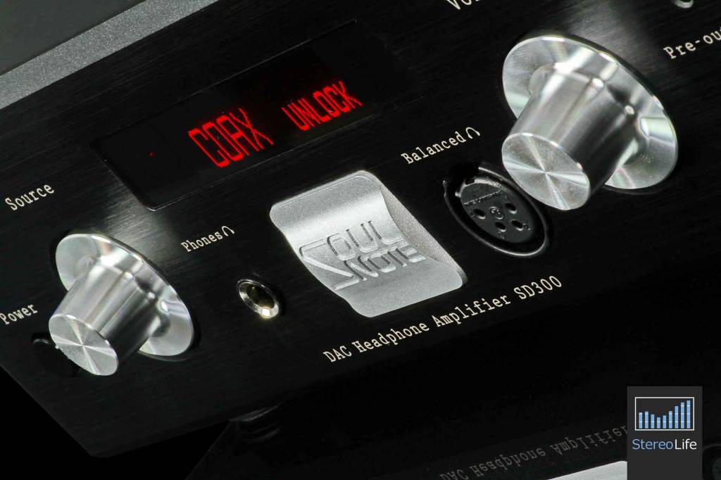 SD300 przy całym swoim audiofilskim rodowodzie zdaje się wspierać tę filozofię. Przede wszystkim jest to urządzenie kompaktowe i obiektywnie ładne, a ponad wszelką wątpliwość - bardzo porządnie wykonane. Panel frontowy wykonano z anodowanego na czarno aluminium i umieszczono na nim kilka kluczowych elementów - włącznik, dwa gniazda słuchawkowe (6,3 mm jacka i 4-pinowego, zbalansowanego Neutrika), metalową tabliczkę z logiem firmy, dwa pokrętła do wyboru źródła i regulacji głośności, wyświetlacz z wbudowanym odbiornikiem podczerwieni i jeszcze jeden przycisk służący do odłączania wyjścia z przedwzmacniacza. W pierwszej chwili mnie to zastanowiło, bo niezbyt często spotyka się takie rozwiązanie, ale w praktyce jest ono genialnie proste i użyteczne. Przycisk można potraktować jako wyciszenie, które działa tylko na głośniki - no bo w większości przypadków coś tam będzie do tego gniazda podpięte - końcówka mocy, integra, może jakiś amplituner lub kolumny aktywne. Możemy więc słuchać muzyki na głośnikach, a jeśli przyjdzie nam ochota na słuchawki lub ktoś z domowników poprosi nas o zakończenie odsłuchu - odcinamy pre-out, zakładamy nauszniki i jedziemy dalej. W wielu urządzeniach tego typu funkcja ta jest realizowana przez samo gniazdo słuchawkowe - w momencie wsunięcia wtyczki do końca, kolumny są automatycznie odłączane. Ale nie wszystkim się to spodoba. Pierwsza lepsza sytuacja to wygrzewanie nauszników. Ponieważ Soul Note nie wybiera za nas, możemy przynieść ze sklepu nowiutkie słuchawki, wpiąć je do przetwornika i odstawić nawet na tydzień, słuchając w tym czasie muzyki z kolumn. Fajnie, aczkolwiek zabrakło mi jednej ważnej opcji - możliwości przełączenia wyjścia analogowego w tryb stałopoziomowy. Jeżeli chcemy aby SD300 był normalnym przetwornikiem łączącym komputer ze wzmacniaczem zintegrowanym, będziemy musieli po prostu ustawić odpowiednio wysoki poziom głośności w DAC-u. A to z kolei bywa problematyczne, kiedy do urządzenia mamy podłączone słuchawki. Na czas odsłuchu przez kolumny najlepiej jest po prostu wypiąć nauszniki z gniazda, ale szkoda, że nikt nie pomyślał o takiej funkcji, jak przestawienie wyjścia w tryb stały, z ominięciem regulacji głośności, za pomocą jakiegoś hebelka lub przycisku. Sprawdzałem nawet w instrukcji obsługi - nie ma takiej możliwości.