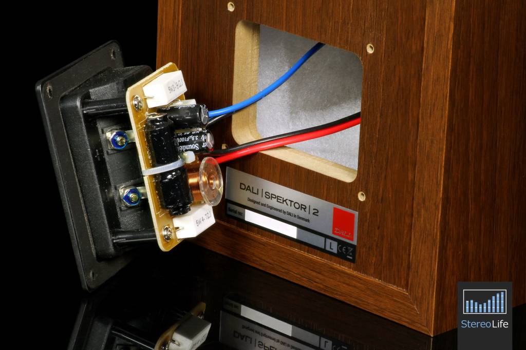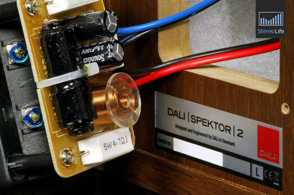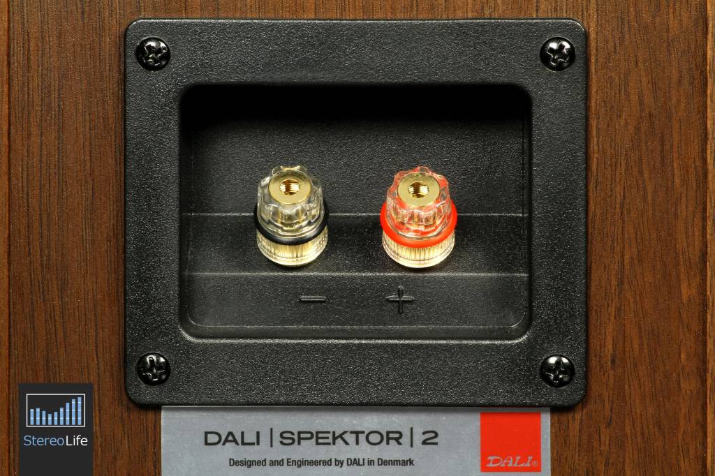 DALI Spektor 2 to kompaktowe monitory, które zdaniem producenta mają pracować wydajnie niezależnie od miejsca i roli, jaką będą spełniać w naszym systemie - czy będą to samodzielne kolumny stereo, fronty czy głośniki efektowe w zestawie kina domowego. Dwudrożną konstrukcję tworzy 13-cm głośniki nisko-średniotonowy i 25-mm kopułka. Membrana woofera została wykonana z włókna drzewnego, co ma zapewniać sztywność konstrukcji oraz niską masę dla większej precyzyjności i szczegółowości. Głośnik otrzymał także metalowy kosz i solidny układ magnetyczny bez ekranowania. Kopułka otrzymała ultralekką, miękką membranę, a materiał tłumiący umieszczony pod nią ma minimalizować odbicia od nabiegunnika, obniżając poziom zniekształceń. Oba głośniki zbliżono do siebie, co według producenta poprawia przejście akustyczne i czasowe. Użycie przetworników zaprojektowanych i zbudowanych na zamówienie duńskiej firmy eliminuje potrzebę korekcji częstotliwości w zwrotnicy, dzięki czemu straty sygnału na tym elemencie są bardzo niskie. Wszystko to umieszczono w obudowie wykonanej z gęstych płyt MDF i wykończonej okleiną dostępną w dwóch kolorach - czarnym i orzechowym. Niezależnie od wybranej wersji, front pozostaje czarny. Wykonano go w taki sposób, aby imitował fakturę naturalnej skóry, co z zewnątrz wygląda całkiem elegancko. Z tyłu znalazły się pojedyncze terminale ukryte w plastikowym profilu oraz niezbyt szeroki wylot tunelu rezonansowego. Jeśli chodzi o parametry, Spektory 2 charakteryzują się umiarkowaną skutecznością na poziomie 84,5 dB, więc mocny wzmacniacz jest mile widziany. Producent sugeruje zastosowanie piecyka o mocy 25-100 W na kanał. Impedancja nominalna to 6 Ω, a pasmo przenoszenia rozciąga się od 54 Hz do 26 kHz.