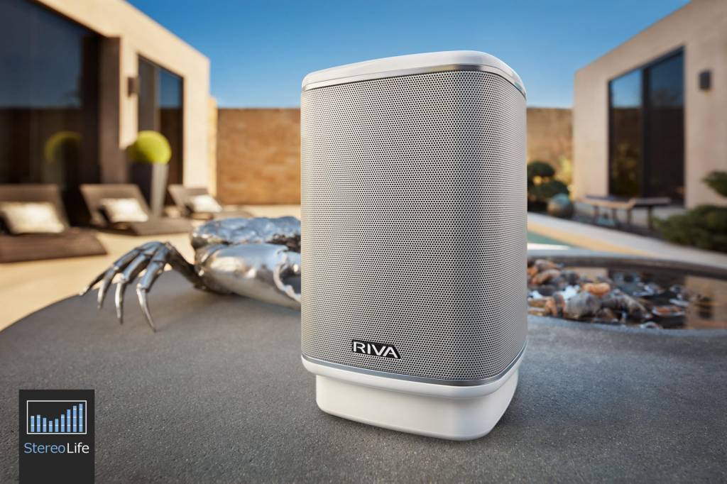 Riva Arena to kompaktowy głośnik multiroom wyposażony dodatkowo w analogowe wejście 3,5 mm i port USB służący do ładowania naszych urządzeń mobilnych. Ta funkcja może się przydać jeśli zdecydujemy się na opcjonalny akumulator montowany do podstawy obudowy. Akcesorium dostępne w cenie 499 zł pozwala cieszyć się muzyką do 20 godzin bez podłączonego zasilania. W firmowym sklepie można także zaopatrzyć się w dopasowany do głośnika pokrowiec podróżny. Samo urządzenie oferuje łączność bezprzewodową Wi-Fi, AirPlay i Bluetooth, a w jego konfiguracji i obsłudze ma pomóc system Chromecast dający dostęp do innych funkcji, takich jak Spotify Connect. Co ciekawe, Arena wspiera odtwarzanie plików hi-res w jakości do 24 bit/192 kHz. Wewnątrz zastosowano bardzo ciekawy układ przetworników o nazwie Trillium. Tworzą go trzy szerokopasmowe przetworniki ADX oraz trzy membrany bierne usytuowane na trzech ściankach obudowy. Firmowe rozwiązanie ma zapewniać nieporównywalnie lepszą reprodukcję pełnego spektrum audio i efektów przestrzennych, niż jakikolwiek inny jednoczęściowy głośnik. Zapewnienia producenta w dużej mierze potwierdziły się podczas odsłuchu. Całość jest napędzana wzmacniaczem o mocy 50 W współpracującym z procesorem DSP. Urządzenie jest dostępne w kolorze białym i czarnym, a producent podkreśla, że podczas pracy na zewnątrz powinno bez problemu wytrzymać lekkie zachlapanie. W zestawie znajdują się trzy kable zasilające dla różnych standardów wtyczek.