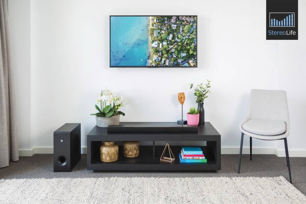 Producent zadbał o to, abyśmy nie musieli się z niczym mocować, prowadzić po podłodze długich kabli i celować wtyczkami w gniazda w jakiejś nienaturalnej pozycji. W przypadku aktywnego basisty, wystarczy kabel zasilający. To wszystko. W momencie odpalenia soundbara, subwoofer powinien połączyć się z nim bezprzewodowo, jakby oba elementy stanowiły jedną całość. W samą listwą sprawa jest trochę bardziej skomplikowana, bo do dyspozycji mamy więcej gniazd. Co ciekawe, wszystkie znalazły się we wgłębieniu, które sięga prawie do przedniej ścianki urządzenia. Kiedy odwrócimy soudbar do góry nogami, widok jest co najmniej dziwny, ale jeśli się nad tym zastanowić, ma to sens. Przewody mają na tyle dużo miejsca, że bez problemu wyprowadzimy je do tyłu przez szeroką szczelinę, a jeśli planujemy powiesić soundbar na ścianie, wystarczy dokładnie dopasować się do kanału na kable. Do dyspozycji mamy gniazdo LAN, dwa gniazda HDMI (wejście i wyjście ARC), szerokie gniazdo USB do aktualizacji oprogramowania (chyba na wypadek gdyby soundbar nie chciał się połączyć z siecią), 3,5-mm gniazdo analogowe i cyfrowe wejście optyczne. Ciekawostką są dotykowe przyciski, które - podobnie, jak w głośnikach MusicCast 20 i MusicCast 50 - umieszczono na górnej ściance soundbara w taki sposób, że na pierwszy rzut oka są niemal niewidoczne. Japońskim projektantom najwyraźniej zależało na tym, aby zestaw był możliwie dyskretny i bezinwazyjny. Ot, czarny soundbar i subwoofer, który można schować w dowolnej wnęce. Może nie ma tu żadnych wodotrysków, ale dzięki temu całość prezentuje się elegancko i nowocześnie.