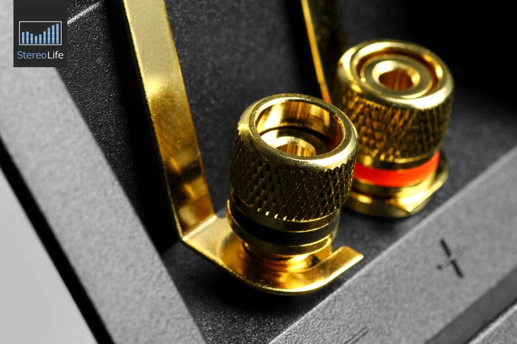 Producent zadbał też o wiele pozornie nieistotnych detali. Firmowe logo na przedniej ściance to nie zwykły napis, ale pięknie wygrawerowana, metalowa tabliczka. Głośniki zamontowano w taki sposób, aby z zewnątrz nie było widać nieestetycznych śrub. Maskownice mają postać obszytych materiałem, lekkich ramek wykonanych z tworzywa sztucznego, przy czym na wysokości tweetera plastikowe poprzeczki są rozmieszczone zdecydowanie rzadziej, jakby konstruktorom bardzo zależało na tym, aby falowód działał prawidłowo nawet z zamontowanymi grillami. Miejsca, w których maskownica styka się z frontem zabezpieczono miękkimi podkładkami, więc pięknie polakierowane obudowy nie powinny pokryć się rysami. Ciekawostką są podstawy, w których umieszczono metalowe, nagwintowane tuleje. Prawdopodobnie chodzi o możliwość skręcenia monitorów z dedykowanymi standami, jednak w tym momencie na stronie amerykańskiej firmy takowych nie zobaczymy. Możliwe, że pojawią się później. Wszystko to - w połączeniu z bardzo charakterystycznymi głośnikami - sprawia, że mamy wrażenie obcowania z naprawdę dopracowanym produktem. Jedynym elementem, który trochę nie pasuje do kolumn za te pieniądze są gniazda. Normalne, podwójne, złocone terminale wciśnięte w ciasny, plastikowy profil. Nic specjalnego. O wiele chętniej widziałbym tu metalową płytkę z wystającymi gniazdami WBT albo Cardasa. Poza tym, ciężko się do czegokolwiek przyczepić.