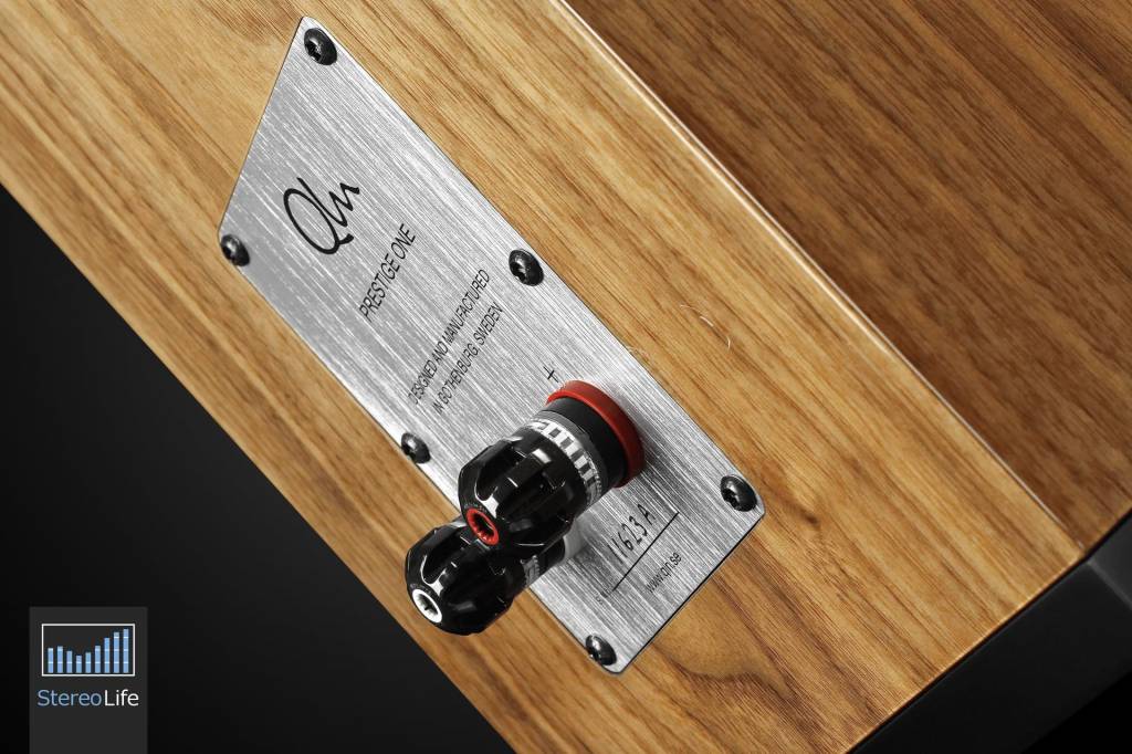 Qln Prestige One to dwudrożne, podstawkowe zestawy głośnikowe w obudowie wentylowanej, która - jak twierdzi producent - została zaprojektowana tak, aby nie występowały w niej żadne niepożądane rezonanse wywołane pracą głośnika nisko-średniotonowego, do którego zresztą całe skrzynki zostały dopasowane - tak pod względem objętości, jak i tłumienia wewnętrznego. Do ich budowy wykorzystano płyty HDF o grubości 22 mm. To jednak nie koniec historii, bo za redukcję drgań odpowiada przede wszystkim zastrzeżona technologia Qboard. Na szczęście nie musimy się domyślać cóż to takiego, bo Szwedzi zamieścili na swojej stronie całe wypracowanie na jej temat. W dużym skrócie, jest to próba stworzenia idealnej obudowy głośnikowej bazująca na naukowym, inżynierskim podejściu do tematu. Konstruktorzy twierdzą, że najbardziej oczywistą metodą walki z wibracjami jest zwiększenie masy, jednak jest to tylko maskowanie problemu - przesuwanie go dalej od obszaru, na którym nam zależy, a więc zamiatanie go pod dywan. Skutecznym rozwiązaniem może być tylko tłumienie owych drgań, co jednak nie jest takie proste i wymaga zastosowania odpowiednich materiałów w taki sposób, aby obudowa sama potrafiła wygasić niepożądane wibracje na drodze mechanicznej. Technologia Qboard polega na połączeniu dwóch warstw "twardych" (takich, jak drewno, sklejka, płyta pilśniowa, MDF lub HDF) sprężystym, tłumiącym drgania "wypełniaczem", który zamienia energię wibracji na ciepło, skutecznie je wygaszając. Dodatkowo, poszczególne płyty są odpowiednio gięte, aby całość była odpowiednio naprężona, a nie "leżała luzem". Wszystko to przekłada się na wysoki współczynnik tłumienia, który dla drewna czy betonu wynosi około 0,01 lub 0,02, natomiast dla obudowy wykonanej w systemie Qboard jest to 0,48. Przypomina to rozwiązanie o nazwie Gelcore opracowane przez firmę Q Acoustics, z tą różnicą, że brytyjska manufaktura została założona w 2006 roku, a opis technologii Qboard, ze wszystkimi szczegółami i wykresami, pochodzi ze stycznia 1995 roku. Niezwykle ciekawie prezentują się także głośniki. Oba zostały wykonane przez Scan-Speaka według specyfikacji Matsa Andersena, przy czym w jednostce nisko-średniotonowej modyfikacje względem "fabrycznego" pierwowzoru poszły znacznie, znacznie dalej. 184-mm woofer bazuje na klasycznej, węglowej "osiemnastce", jednak tutaj membran nie wykonano ze wzmocnionej włóknami węglowymi celulozy, ale z czarnych włókien aramidowych. Głośnik otrzymał solidny układ magnetyczny z miedzianym pierścieniem oraz cewkę o średnicy 42 mm i długości 19 mm, wykonaną z miedzianego drutu o sześciokątnym przekroju. Producent twierdzi, że taki przetwornik charakteryzuje się stabilną pracą w całym zakresie wychylenia, co przekłada się na wyższą dynamikę oraz wierne oddanie skali i barwy ludzkiego głosu i poszczególnych instrumentów. Wysokimi tonami zajmuje się tekstylna kopułka o średnicy 25 mm zapewniająca płaską charakterystykę częstotliwościową nawet powyżej 30 kHz, z wyjątkową dyspersją poza osią. Duża tylna komora akustyczna (którą zresztą widać przez duży, umieszczony na tylnej ściance bass-reflex) obniża rezonans głośnika wysokotonowego znacznie poniżej punktu podziału zwrotnicy. Ta została wykonana z elementów pierwszorzędnej jakości. Zobaczymy tu kondensatory Mundorfa i cewki powietrzne zmontowane i zaklejone w taki sposób, aby nie wpadały w wibracje. Producent twierdzi, że nawet okablowanie wewnętrzne poprowadzono specjalnie zaprojektowanym, miedzianym przewodem w izolacji z czystego polipropylenu, co zdaniem Matsa Andersena sprawia, że kable nie wprowadzają żadnych podkolorowań dźwięku, podnosząc poziom jego transparentności. Po demontażu aluminiowej tabliczki z gniazdami rzuciły mi się w oczy dwie rzeczy. Po pierwsze, wnętrze szwedzkich monitorów szczelnie wypełnia gęsta, biała wełna mineralna. A więc Qboard swoją drogą, ale o typowym tłumieniu także nie zapomniano. Po drugie, miedziane przewody o sporym przekroju faktycznie wyglądają bardzo audiofilsko, ale z gniazdami zostały połączone na wsuwki. Za to do samych terminali nie sposób się przyczepić. Są to masywne gniazda WBT z serii Nextgen z elementami przewodzącymi wykonanymi z czystej miedzi. Producent zapewnia, że wszystkie elementy użyte do budowy Prestige One są starannie wybierane i poddawane indywidualnym pomiarom. Dopiero wtedy trafiają na stół montażowy. Oczywiście, takie historie może serwować nam każdy konstruktor kolumn, ale widząc bezkompromisowe podejście Matsa Andersena do wielu, wielu kwestii, którymi w zestawach za dwanaście tysięcy złotych jeszcze nie wszyscy zawracają sobie głowę, jestem w stanie w to uwierzyć.