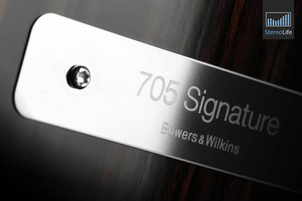 Bowers & Wilkins 705 Signature to dwudrożne, podstawkowe zestawy głośnikowe w obudowie wentylowanej, zaprojektowane jako rozwinięcie bazowego modelu 705 S2. Producent informuje, że wykorzystał tu zarówno technologie zaczerpnięte z flagowej serii 800 D3, jak i rozwiązania stworzone specjalnie z myślą o serii 700. Najbardziej charakterystycznym elementem opisywanych monitorów jest oczywiście głośnik wysokotonowy Carbon Dome. Zaprojektowana jako pomost pomiędzy aluminiową podwójną kopułką stosowaną w serii 600 i diamentową kopułką wykorzystywaną w serii 800 Diamond, kopułka Carbon Dome składa się z dwóch sekcji. Przednia część to 25-mm aluminiowa kopułka o grubości 30 mikronów, która została usztywniona karbonową powłoką nanoszoną metodą PVD (Physical Vapour Deposition). Drugą sekcję stanowi węglowy pierścień o grubości 300 mikronów, który został wyprofilowany tak, aby pasował do kształtu kopułki. Producent zapewnia, że cała konstrukcja charakteryzuje się niesamowitą sztywnością i odpornością na zniekształcenia, przy zachowaniu najniższej możliwej masy i z częstotliwością pierwszego break-upu sięgającą 47 kHz. Ponadto, 705 Signature wykorzystują konstrukcję Tweeter-On-Top oraz technologię Solid Body Tweeter. Konstrukcja ta nawiązuje do podejścia zastosowanego w serii 800 Diamond i zapewnia te same korzyści brzmieniowe. Tak jak w pozostałych głośnikach serii 700, zamiast wydrążonej obudowy z cynku, nowe modele Signature wykorzystują ten sam kształt frezowany z litego aluminium, aby zapewnić sztywniejszą, odporną na rezonanse strukturę. Ważąca ponad 1 kg obudowa tweetera ma być niesamowicie bezwładna i korzystać z takiego samego sposobu odizolowania od obudowy oraz akustycznie transparentnej maskownicy, co tweetery w serii 800 Diamond. Konstrukcja ta pozwala także na wykorzystanie masy obudowy głośnika wysokotonowego jako radiatora dla kopułki tweetera. W 16,5-cm głośniku nisko-średniotonowym zastosowano oczywiście membranę Continuum. Jej konstrukcja opiera się na koncepcji kontrolowanej elastyczności. Pomaga to chronić membranę przed nagłym przejściem z pracy tłokowej do trybu break-upu, co zdaniem brytyjskich inżynierów poprawia otwartość i neutralność konwencjonalnego głośnika. Continuum jest tkanym kompozytem, który zdaniem B&W pozwala uzyskać bardziej przejrzyste i szczegółowe brzmienie średnich tonów. Głośnik nisko-średniotonowy współpracuje z tunelem Flowport, który dzięki unikalnej konstrukcji pozwala na swobodny przepływ powietrza. Pokrycie powierzchni tunelu drobnymi wgłębieniami ma znacząco redukować to zniekształcenia w zakresie niskich częstotliwości. W porównaniu do modelu 705 S2, 705 Signature zyskały także ulepszoną zwrotnicę, w której zastosowano kondensatory dostarczane przez firmę Mundorf oraz większy radiator. Zmiany te nie wpłynęły jednak na parametry, które pokrywają się z wartościami, jakie producent podaje w tabeli danych technicznych "zwykłych" 705 S2.