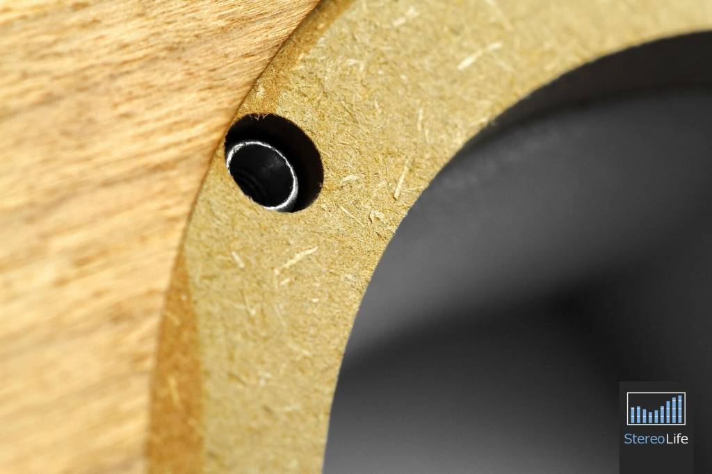 Spendor Classic 4/5 to dwudrożne mini-monitory w obudowie zamkniętej. 15-cm głośnik nisko-średniotonowy otrzymał polimerowo-kevlarową membranę EP77 z nieruchomym korektorem fazy, kosz ze stopu magnezowego, wydajny układ magnetyczny z poprawionym tłumieniem elektrodynamicznym i rozpraszaniem cieplnym, a także zawieszenie umożliwiające dłuższy skok membrany. Producent informuje, że przetwornik ten został stworzony z myślą o pracy w obudowie zamkniętej, a podczas jego projektowania skoncentrowano się na maksymalnej liniowości charakterystyki przetwarzania przy niewielkich poziomach mocy. Tweeter to z kolei poliamidowa kopułka o średnicy 22 mm z pierścieniowym zawieszeniem o szerokim profilu. Mała średnica membrany ma gwarantować liniową emisję najwyższych częstotliwości, a dodatkowa powierzchnia drgająca w formie pierścienia uzupełnia pasmo od dołu, poprawiając liniowość przetwarzania. Zwrotnica została skonstruowana tak, aby zapewnić dobrą integrację fazową przetworników i bezpieczną impedancję 8 Ω. Obudowę sklejono z MDF-u, przy czym producent podkreśla, że nie jest to typowa skrzynka złożona z elementów o takiej samej grubości, ale rozwinięcie koncepcji lekkich, cienkich paneli bocznych połączonych z masywną ścianką przednią. Te pierwsze są jednak uzupełnione od wewnątrz lepko-sprężystymi elastomerami, zamieniającymi drgania rezonansowe w ciepło. Brytyjczycy tłumaczą, że największe różnice brzmieniowe i wzornicze w porównaniu do poprzednich monitorów Classic 3/5 oraz bliźniaczych A1 dotyczą ściślejszego podejścia do klasycznych aspektów konstrukcji, a największa poprawa w modelu Classic 4/5 ma dotyczyć zakresu niskich tonów, które mają być pozbawione ograniczeń wynikających z zastosowania obudowy zamkniętej oraz sztucznych podbić obecnych w większości nowoczesnych konstrukcji wentylowanych. Jak to wygląda w praktyce? Spendory sprawiają wrażenie wykonanych bardzo solidnie. Ich przednia ścianka faktycznie jest stosunkowo gruba, a głośniki utrzymują na miejscu śruby, które nie wchodzą bezpośrednio w MDF, ale w metalowe, nagwintowane tuleje. Same przetworniki także wyglądają na dopracowane. Z tyłu zamontowano pojedyncze gniazda, które niestety umieszczono w ciasnym, plastikowym profilu, w niewielkiej odległości od siebie. Przy montażu widełek trzeba będzie zachować ostrożność, aby nie doprowadzić do zwarcia, natomiast banany będą wychodziły z gniazd pod kątem, do góry, co w przypadku monitorów jest trochę nienaturalne i sprawia, że kable od razu mocno się wyginają. Szkoda, bo terminale są całkiem zacne i na pewno prezentowałyby się lepiej bez tego czarnego korytka. Na tabliczce znamionowej umieszczono informację, która nie pozostawia wątpliwości co do miejsca, w którym Spendory zostały nie tylko zaprojektowane, ale też wyprodukowane - UK. Monitory są dostępne w dwóch wariantach naturalnego forniru - czereśniowym i orzechowym. Z parametrów warto zwrócić uwagę na bardzo niską skuteczność. 84 dB to wartość, która jednoznacznie sugeruje, że trzeba rozejrzeć się za mocnym wzmacniaczem.