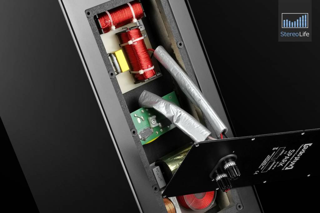 Rozkręcanie Sparków 6 to, przynajmniej dla osoby zainteresowanej technicznym aspektem audiofilskiego sportu, czysta poezja. Po demontażu ozdobnego panelu maskującego, co zajmuje dosłownie trzy sekundy, mamy dostęp do wszystkich głośników i mocujących je śrub. Od razu widać jednak, że kosze nie stykają się bezpośrednio z płytą frontową. Każdy z nich jest zawieszony na kilku gumowych podkładkach. Od razu zacząłem się zastanawiać, jak to się ma do szczelności obudowy, ale może producent uznał, że to nie jest hydraulika, drobne przecieki nikomu nie będą przeszkadzały, a jeśli nawet, to maskownica załatwi sprawę. Śruby wchodzą oczywiście w nagwintowane tuleje, więc podczas demontażu przetworników z kolumn nie sypią się wióry. Wewnątrz wyraźnie widać obsesję niemieckich konstruktorów na punkcie tłumienia drgań. Nie ma tu chyba ani jednego elementu, któremu w taki czy inny sposób nie zostałaby odebrana możliwość "dzwonienia". Nawet przewody. Za głośnikami stykają się z obszernymi kawałkami wełny zawiniętej w bawełniane poszewki, natomiast w pobliżu zwrotnicy zostały zabezpieczone koszulkami z wypełnieniem z dość grubego filcu.