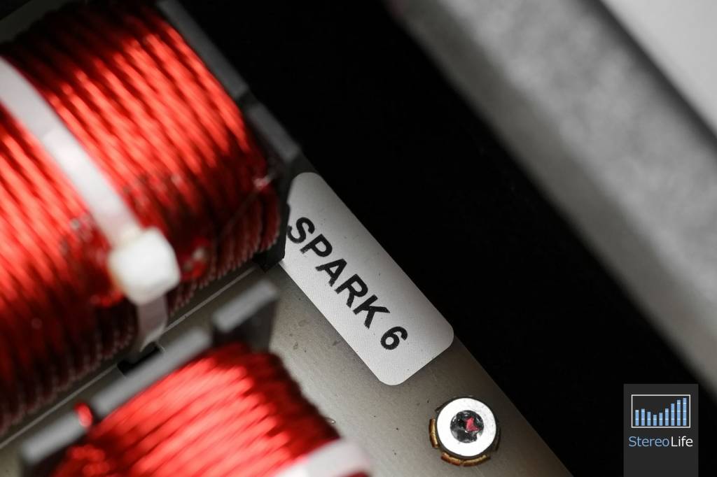 Audio Physic Spark 6 to trójdrożne kolumny podstawkowe w obudowie wentylowanej. Producent chwali się tym, że zastosowano w nich najnowszą technologię PowerTrain, znaną z modelu Cardeas, który jeszcze do niedawna pełnił w katalogu rolę flagowca. Fundamentem technologii PowerTrain jest głośnik średniotonowy HHCM SL, który pracuje bez centrującego aluminiową membranę dolnego zawieszenia. Na pierwszy rzut oka widać, że zawieszenie górne jest trochę dziwne - jest to szeroki, gumowy pierścień, którego powierzchnia jest niemal całkowicie płaska. Niemcy twierdzą, że dzięki takiemu rozwiązaniu opór występujący podczas pracy membrany niemal nie istnieje, nie ma kompresji, a przetwornik uzyskuje niespotykaną dotąd dynamikę i rozdzielczość. Dodatkowo głośnik wyposażony jest w podwójny kosz. Membrana przymocowana jest do tłumiącego rezonanse kosza z polimerów, który zaledwie w kilku punktach łączy się z bardzo solidnym i sztywnym koszem aluminiowym, do którego przymocowany jest potężny magnes.