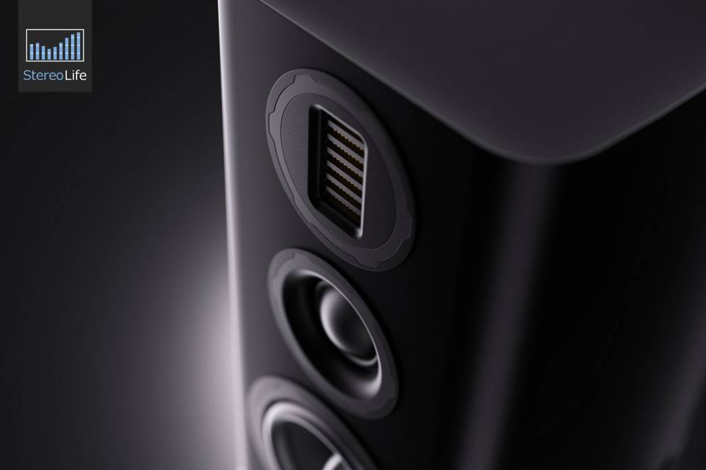 Głośnik niskotonowy pracuje w obudowie bas-refleks, ale i tutaj Wharfedale zaskakuje unikalnym rozwiązaniem. Jest nim port typu SLPP (Slot-Loaded Profiled Port). Zamiast okrągłej dziury z przodu czy z tyłu, zastosowano wylot skierowany do dołu, w postaci sporej szczeliny zajmującej całą powierzchnię między dolną ścianką kolumny a masywnym cokołem będącym częścią obudowy. Ten szczelinowy port promieniuje w trzech kierunkach - w lewo, prawo i do tyłu, wokół podstawy kolumny. Taka konstrukcja ma kilka zalet. Po pierwsze, redukuje nieprzyjemne świsty powietrza (duży przekrój i profilowanie szczeliny sprawiają, że przepływ jest cichszy i bardziej równomierny). Po drugie, rozprasza niskie częstotliwości w pokoju bardziej jednorodnie, co ułatwia ustawienie kolumn względem ścian.