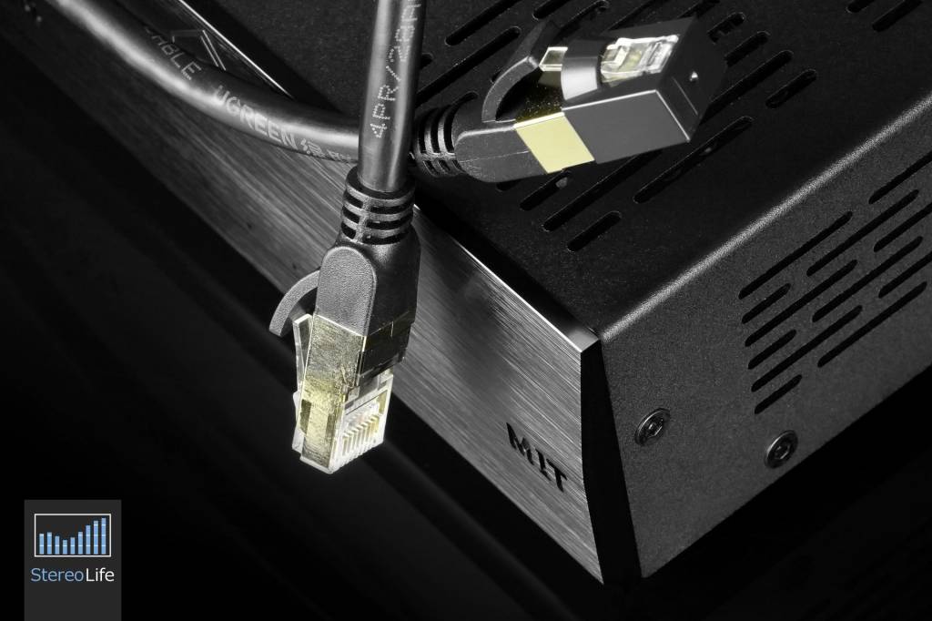 Pierwsze wrażenie jest podobne - urządzenie przyjeżdża do nas w niezwykle eleganckim, czarnym kartonie, w którym oprócz dania głównego znajdziemy dokumenty oraz pudełko z akcesoriami. Najważniejszym dodatkiem jest oczywiście zasilacz w formie niewielkiej, plastikowej kostki z zieloną diodą, krótkim kablem z tróbolcową wtyczką IEC i znacznie dłuższy, zamontowanym na stałe przewodem idącym do transportu. Niektórym użytkownikom w zupełności to wystarczy, przynajmniej na start, jednak audiofile interesujący się takimi strumieniowcami z reguły zaczynają szybko szukać możliwości upgrade'u. Jeden gadżet otrzymujemy w komplecie - jest to bardzo porządny przewód LAN ze złoconymi wtyczkami. To prezent, którym klienci na pewno nie pogardzą. Jeżeli jednak chcielibyśmy sprawić swojemu transportowi prezent z prawdziwego zdarzenia, gotowym rozwiązaniem jest zasilacz F1. Wygląda w zasadzie identycznie jak M1T, więc wizualnie (technicznie zapewne też) będzie z nim tworzył zgrany duet, a do tego nie kosztuje majątku. 2199 zł to kwota, którą posiadacze wycenionego na 4990 zł transportu z pewnością udźwigną. Warto wspomnieć o tym, że bohater naszego testu ma też starszego brata - model M1, który kosztuje 6990 zł i został wyposażony w przetwornik cyfrowo-analogowy, więc jest pełnoprawnym streamerem z wyjściem analogowym i małym bonusem w postaci gniazda słuchawkowego na przedniej ściance. Kurde, naprawdę fajnie to wygląda. I pomyśleć, że wszystko to zaczęło się od drogiego rozgałęziacza dla plikowo-sieciowych perfekcjonistów...