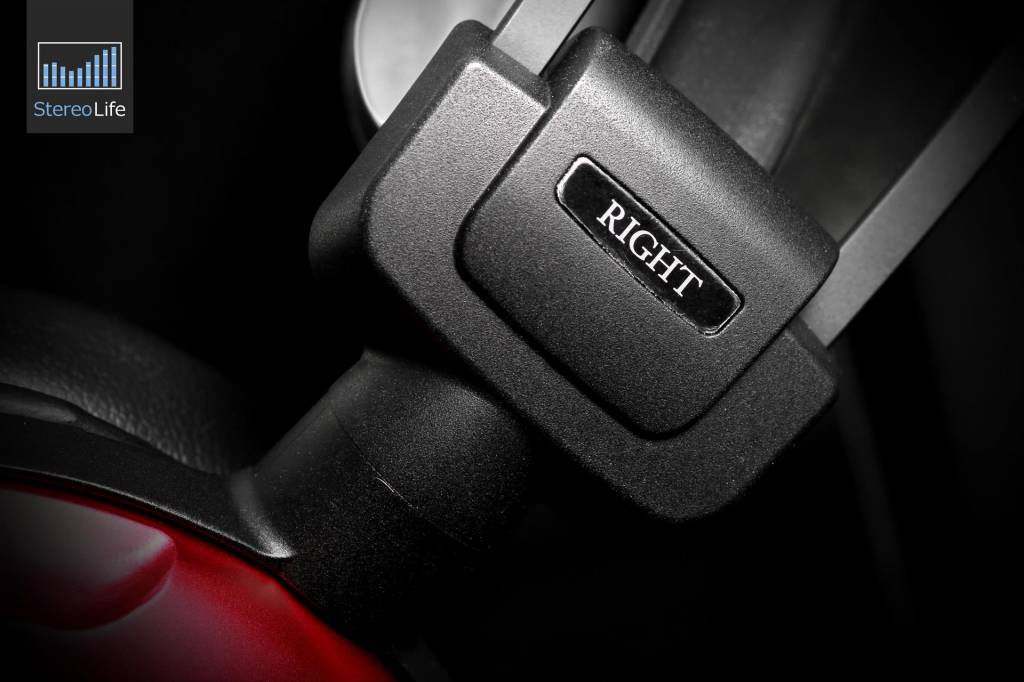 ATH-A1000Z otrzymały dość nietypowy system sprężynujących skrzydełek, dzięki którym przy każdym użyciu nauszniki same dopasowują się do rozmiaru głowy użytkownika. Do delikatnie wygiętych, plastikowych trzymadełek przymocowano od wewnątrz kawałki gąbki obitej przyjemnym w dotyku materiałem, dzięki czemu podczas odsłuchu nie czujemy praktycznie żadnego nacisku na czubku głowy.Czerwone muszle o zmatowionej powierzchni nie są jedynym charakterystycznym elementem opisywanego modelu. Jak przystało na audiofilskie słuchawki tej marki, ATH-A1000Z otrzymały dość nietypowy system sprężynujących skrzydełek, dzięki którym przy każdym użyciu nauszniki same dopasowują się do rozmiaru głowy użytkownika. Do delikatnie wygiętych, plastikowych trzymadełek przymocowano od wewnątrz kawałki gąbki obitej przyjemnym w dotyku materiałem, dzięki czemu podczas odsłuchu nie czujemy praktycznie żadnego nacisku na czubku głowy. Nie możemy go czuć, bo niczego tam nie ma. Nacisk samych muszli był jak dla mnie idealny, w związku z czym cała masa słuchawek przyjemnie rozłożyła się na wszystkie elementy mające styk z moją czaszką. Aby komfort użytkowania był jeszcze większy, sprężynujące listki otrzymały dodatkowe zawiasy umożliwiające im swobodny obrót w płaszczyźnie pionowej. Mimo to, jak w większości słuchawek, rozwiązanie to nie dla każdego będzie idealne. Osoby o małych głowach mogą ledwo zahaczać o skrzydełka pełniące rolę pałąka. W takiej sytuacji trzeba będzie polegać tylko na nacisku padów na uszy. Z kolei przy maksymalnym wysunięciu plastikowe elementy stykają się już z metalowymi poprzeczkami spinającymi obie muszle. Nie jest to uciążliwe, ale najlepiej byłoby jednak zmieścić się w przedziale, w którym skrzydełka prawidłowo wykonują swoją pracę, leciutko naciskając nasz czerep i tym samym utrzymując słuchawki na miejscu. Co ciekawe, każda z muszli może obracać się także w płaszczyźnie poziomej. Plastikowe tuleje odpowiedzialne za ten ruch zostały spasowane tak ciasno, że nauszniki posłusznie zachowują nadaną im formę. Możemy więc ustawić je tak, aby nacisk był bardziej odczuwalny w okolicach skroni i policzków, albo za uszami, w kierunku potylicy. Producentowi prawdopodobnie zależało na tym, abyśmy sami mogli to sobie wyrównać i ułożyć słuchawki na głowie tak, jak będzie nam najwygodniej. Spodobały mi się także czytelne oznaczenia kanałów. Nie w formie kropeczek, ledwo widocznych liter czy napisów na wewnętrznej stronie muszli, ale normalnie, najprościej jak się da - na plastikowych łącznikach spinających nauszniki, pałąk i sprężynujące skrzydełka w jedną całość.
