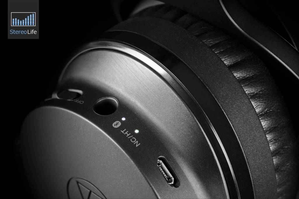 Dobre wrażenie zrobiło na mnie także sterowanie, które - za wyjątkiem panelu dotykowego - jest chyba tak proste, jak można to sobie wyobrazić. Wszystkie elementy funkcyjne umieszczono na lewej muszli. Mamy tu gniazdo USB do ładowania i 2,5-mm jacka umożliwiającego połączenie przewodowe (w sytuacji, gdy wyczerpie nam się wbudowany akumulator lub gdy z jakiegoś innego powodu będziemy chcieli podpiąć słuchawki za pomocą kabla), główny włącznik w postaci suwaka i pojedynczy przycisk bez jakiegokolwiek opisu, aktywujący system aktywnej redukcji szumów oraz funkcję Quick Hear-Through. Panel dotykowy działa całkiem nieźle, choć przerzucanie utworów sprawiło mi trochę więcej trudności i parę razy zdarzyło się, że słuchawki zamiast tego wysłały do smartfona lub laptopa zupełnie inną komendę. Trzeba też przyzwyczaić się do tego, że poziom głośności regulujemy dotykając pokrywę muszli w dolnej i górnej części, a jej środek zarezerwowano dla funkcji zatrzymywania i ponownego włączania muzyki i ciężko jest wyczuć gdzie leży granica między tymi obszarami. Pomaga w tym umieszczone w samym centrum logo Audio-Techniki, jednak kiedy już je poczujemy, słuchawki zaczynają wykonywać nasze polecenia i dopiero w tym momencie możemy zorientować się, że sięgnęliśmy zbyt wysoko lub zbyt nisko. Jestem przekonany, że po dłuższym czasie można to opanować i pocelować palcem dokładnie tam, gdzie chcieliśmy, ale początkowo sprawiało mi to problem. Nie wiem czy nie wolałbym jednak fizycznych przycisków. Co do skuteczności układu QuietPoint, oceniam ją raczej przeciętnie. Nie jest to ani najlepszy, ani najsłabszy tego typu system, z jakim miałem do czynienia. Jednak w połączeniu z dobrym tłumieniem zewnętrznych dźwięków przez samą konstrukcję słuchawek, dawało to bardzo fajne wrażenie izolacji od otoczenia.