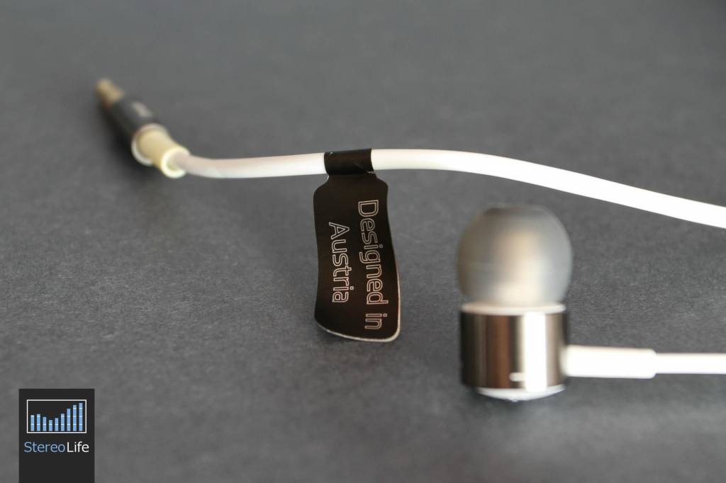 Nie spodobały nam się natomiast trzy detale. Pierwszy to końcówka przewodu wchodzącego do wtyku 3,5 mm. Została zabezpieczona czymś w rodzaju luźnego kawałka koszulki termokurczliwej, mającej lekko żółtawo-zielonkawe zabarwienie. Kolor nie jest jednak problemem. W przypadku prostego wtyku, takie zabezpieczenie kabla przed przetarciem może okazać się niewystarczające. Drugi detal to śliskie nakładki douszne. Być może zostały tak zaprojektowane, aby nie przyciągać brudu, ale trzeba przez to dość mocno wciskać słuchawki do uszu i sprawić, aby trzymały się bardziej na zasadzie zasysania, niż starej jak świat siły tarcia. I wreszcie trzeci drobiazg - naklejka na przewodzie informująca nas, że słuchawki zostały zaprojektowane w Austrii. Napis ten znajdziemy również na opakowaniu, aczkolwiek zawarto tam także drugą informację - wykonane w Chinach. Rozumiemy jeszcze dumne napisy świadczące o tym, że sprzęt został w całości wykonany na przykład w Niemczech, Anglii lub Francji, ale żeby chwalić się tym, że coś zostało zaprojektowane w Europie? I to w przypadku firmy założonej w 1947 roku w Wiedniu? Naklejka jest wkurzająca, bo malutka i zaciśnięta na kablu tak ciasno, że jej zdemontowanie bez uszkodzenia czy zarysowania przewodu może nie być proste. Ale z drugiej strony może należy się cieszyć? W końcu pewnego dnia te naklejki mogą zniknąć, a wtedy sprzęt zaprojektowany i wykonany w Europie będzie osiągał kosmiczne ceny.