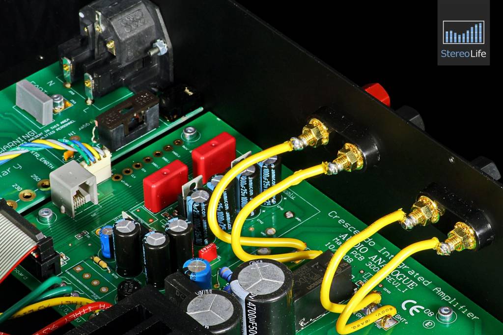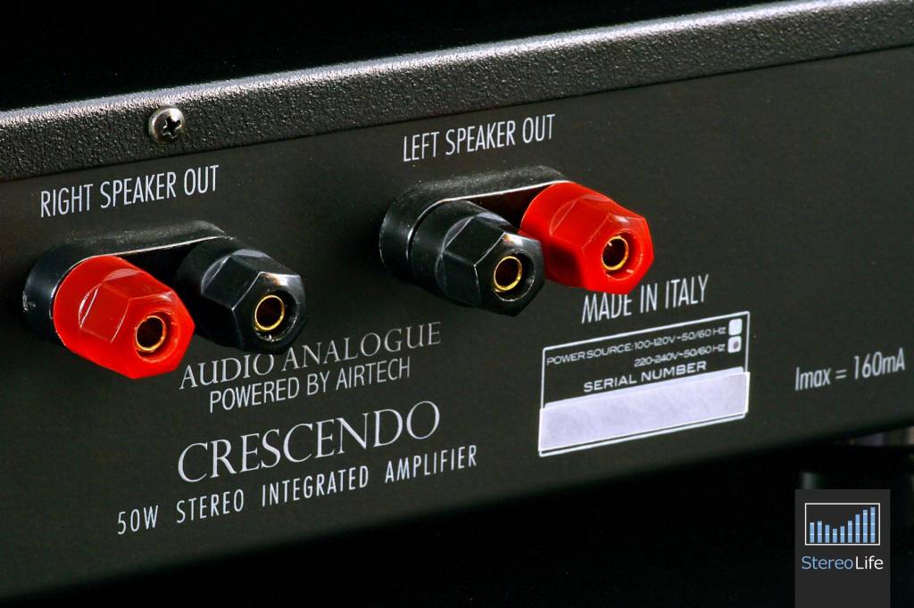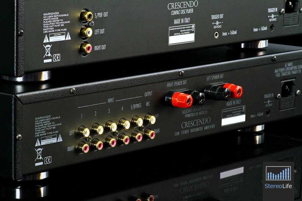 System Crescendo jest wstępem do oferty firmy Audio Analogue. Producent deklaruje, że podczas jego tworzenia nie skupiano się tylko na specyfikacji technicznej, ale przede wszystkim położono nacisk na finalne brzmienie. Kluczem do jego uzyskania miał być odpowiedni dobór komponentów, w tym okablowania stworzonego we współpracy z firmą AirTech zbudowanego z najwyższej jakości przewodników z miedzi OCC o czystości 7N. Wzmacniacz wyposażono w pięć wejść liniowych z tyłu oraz jedno dodatkowe wejście 3,5 mm z przodu urządzenia, wyjście do nagrywania oraz wyjście słuchawkowe 6,3 mm na przednim panelu. Integra dysponuje mocą 50 W przy obciążeniu 8 Ω i 80 W przy 4 Ω, przy czym w obu przypadkach zniekształcenia THD są mniejsze, niż 0,05%. Wewnątrz najwięcej miejsca zajmuje transformator toroidalny z oddzielnymi odczepami dla przedwzmacniacza i końcówki mocy. Cała elektronika zmieściła się na dwóch płytkach, przy czym na jedna odpowiada właściwie tylko za przesyłanie prądu z gniazdka do włącznika, a stamtąd do transformatora. Druga płytka znajduje się przy samych gniazdach, a od zasilacza oddzielają ją aluminiowe radiatory. Droga sygnału jest zatem tak krótka, jak to tylko możliwe.