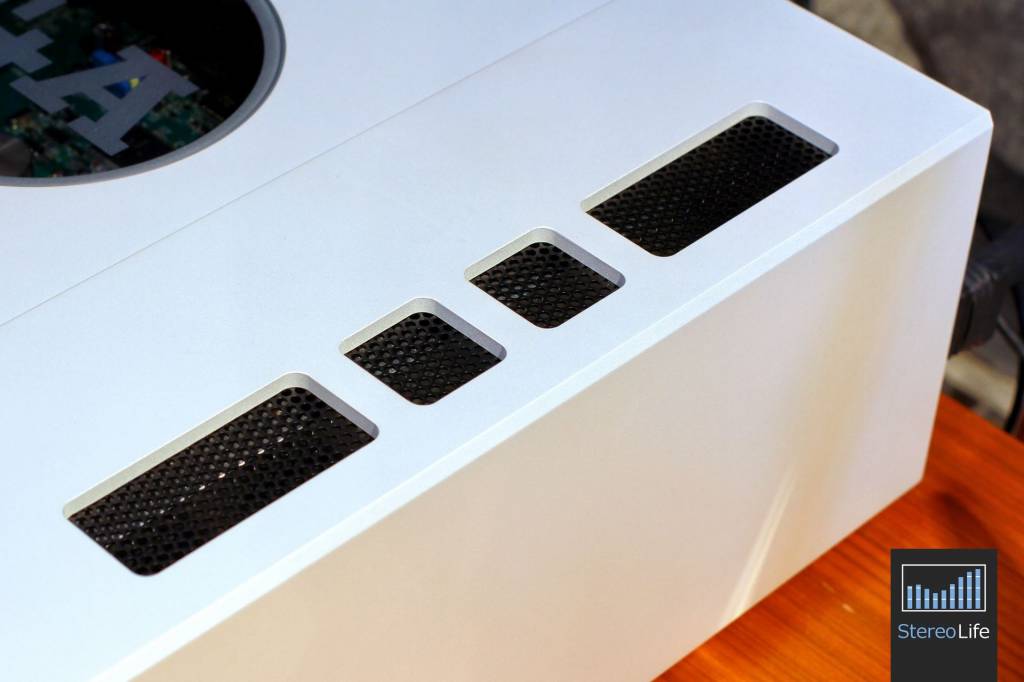 Po pierwsze - moc. Jest praktycznie nieograniczona. Kiedy w normalnym wzmacniaczu kręcimy gałką w prawo, zwykle mamy wrażenie, że prosimy urządzenie o wyprodukowanie większej dawki prądu, co owszem uda mu się, ale tylko częściowo. W którymś momencie dźwięk prawdopodobnie zacznie się "rozjeżdżać", a po przekroczeniu pewnego progu głośności zacznie zupełnie jazgotać i wpadać w clipping. Tutaj też mamy klocek z dużym pokrętłem, ale na ucho mamy wrażenie, że zasada jego działania jest zupełnie inna. Kręcąc gałką w prawo nie czujemy się jakbyśmy zwiększali moc, ale raczej zdejmowali ograniczenie. Trochę tak, jakbyśmy stanęli rowerem na szczycie wielkiej, stromej góry i powoli odpuszczali hamulec. W tym wzmacniaczu moment "przesycenia" nigdy nie następuje. Moc dostępna jest w każdej chwili, a my możemy po prostu w mniejszym lub większym stopniu ją "odblokować". Jeżeli to zrobimy, trzeba będzie tylko obserwować membrany głośników, bo to co najwyżej one mogą nie znieść takiej dawki prądu. Drugim czynnikiem ograniczającym są nasze uszy, a trzecim - konstrukcja pomieszczenia, w którym wykonamy tę próbę ognia. Nie żartuję - z odpowiednio dużymi kolumnami można odkryć, że podwieszane panele lub lampki na suficie jednak nie są tak solidne, jak nam się wydawało...