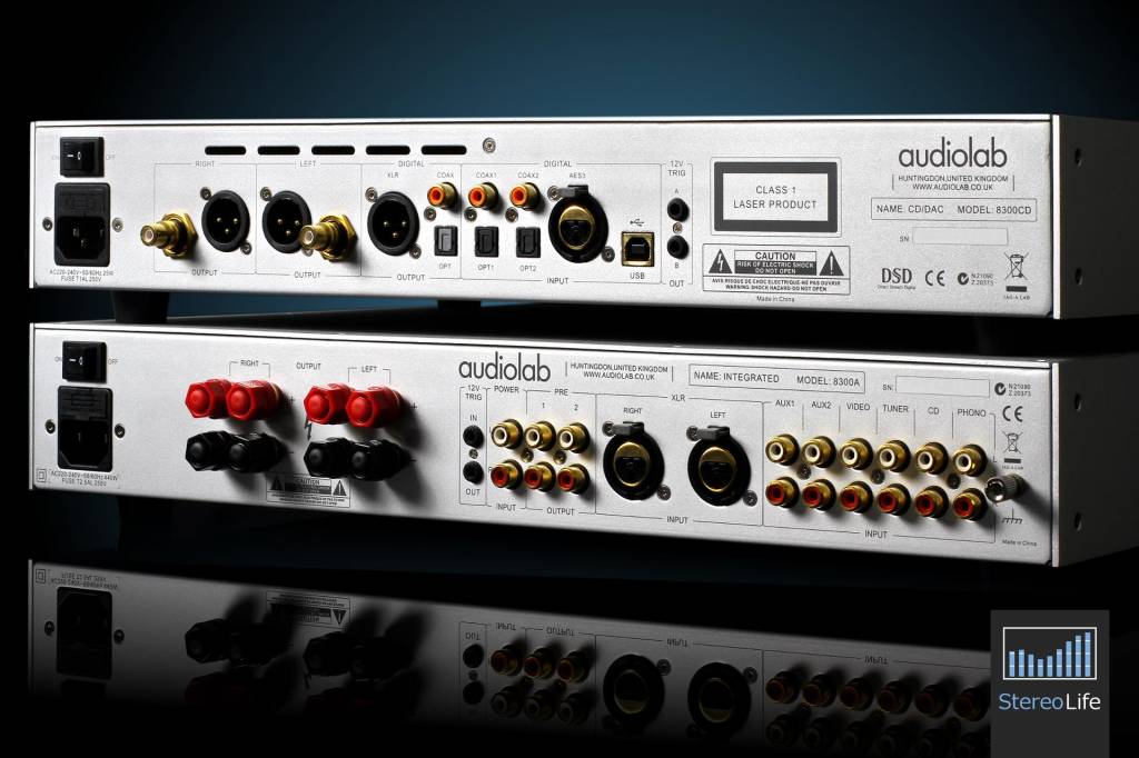 Patrząc na tylną ściankę odtwarzacza, można dojść do wniosku, że jest on wypadkową dwóch urządzeń z poprzedniej serii. Zachowując funkcję przedwzmacniacza, zrezygnowano z możliwości podpięcia trzech urządzeń torem analogowym (co było możliwe w odtwarzaczu 8200CDQ), jednocześnie rozszerzając funkcjonalność toru cyfrowego (dołożono wejście symetryczne AES/EBU oraz wyjście sygnału takiego samego formatu). Oprócz tego mamy tu po dwa cyfrowe wejścia koaksjalne i optyczne, wyjście w obu standardach oraz wejście USB. Wyjść analogowych są dwie pary - pozłacane RCA i zbalansowane XLR, co z uwagi na brak wyjścia słuchawkowego zarówno we wzmacniaczu, jak i odtwarzaczu, może się przydać przy podłączeniu wzmacniacza słuchawkowego. Integrę 8300A podłączamy wtedy do odtwarzacza kablami XLR, a gniazda RCA wykorzystujemy do podpięcia słuchawkowca. Niebawem na polskim rynku ma się pojawić bogatszy w gniazda i funkcje model 8300CDQ, jednak tutaj i tak nie ma na co narzekać. Co ciekawe, do obu opisywanych klocków dołączono bardzo podobne pudełeczka z akcesoriami. Na wyposażeniu znajdziemy tani kabel zasilający i systemowy pilot zdalnego sterowania. Przy zakupie systemu jeden sterownik możemy sobie zostawić w odwodzie. W testowanych egzemplarzach oba piloty były czarne, choć w serii 8200 kupując urządzenie w kolorze srebrnym, dostawaliśmy również "leniucha" ze srebrnym panelem górnym. Wszystko wskazuje na to, że Audiolab zrezygnował z tego pomysłu, prawdopodobnie w celu zaoszczędzenia paru funtów na produkcji dwóch różnych pilotów.