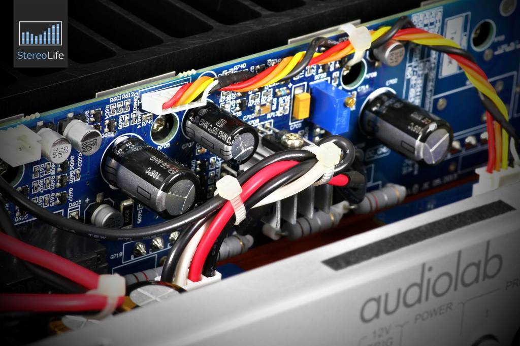 Audiolab 8300A jest jest stereofonicznym wzmacniaczem dual mono pracującym w klasie AB. Urządzenie posiada sześć wejść liniowych, w tym jedno gramofonowe, oraz parę wejść XLR, chociaż konstrukcja wzmacniacza nie jest zbalansowana. Oprócz tego można tu podłączyć aż cztery monofoniczne końcówki mocy (przy pracy w trybie przedwzmacniacza), lub przy włączeniu trybu pre-power korzystać z 8300A jako końcówki mocy podłączonej do zewnętrznego przedwzmacniacza. W opisywanym piecyku zastosowano technologię Active Current Delivery, która zgodnie z zapewnieniami producenta ma niwelować zniekształcenia dźwięku. A więc moda na stosowanie profesjonalnie brzmiących nazw układów jeszcze nie minęła... Chociaż w tym przypadku muszę przyznać, że śmiech śmiechem, ale nawet mocne przekręcenie pokrętła głośności w prawo nie powoduje w spadku jakości dźwięku, a na dodatek w przerwach pomiędzy utworami jest po prostu cicho. Żadnych szumów! Aż z ciekawości nacisnąłem stop na odtwarzaczu i przekręciłem głośność na maksa. Zwykle w takiej sytuacji słychać chociażby ciche szumy własne układów, a tutaj nic. Cisza jak makiem zasiał. Brawo Ty, Active Current Delivery! Wzmacniacz oferuje 75 W na kanał i jest o 15 W mocniejszy od swojego poprzednika, co nawiasem mówiąc, również słychać. W zasilaniu zastosowano jeden transformator toroidalny. Purystyczni audiofile mogą kręcić nosem, że w takim razie nie jest to pełne dual mono, bo wtedy powinniśmy mieć "pod maską" dwa transformatory. Tak, ale wtedy zarówno cena, jak i gabaryty urządzenia byłyby zupełnie inne. W zasilaniu pracują cztery kondensatory o łącznej pojemności 60000 µF. Ciekawie jest podawane pasmo przenoszenia. Dla dosyć wyśrubowanego spadku amplitudy o 0,1 dB wynosi ono 10 Hz - 20 kHz, a dla standardowo przyjmowanego dla wszystkich urządzeń 3 dB widzimy budzący respekt zakres 1 Hz - 100 kHz.