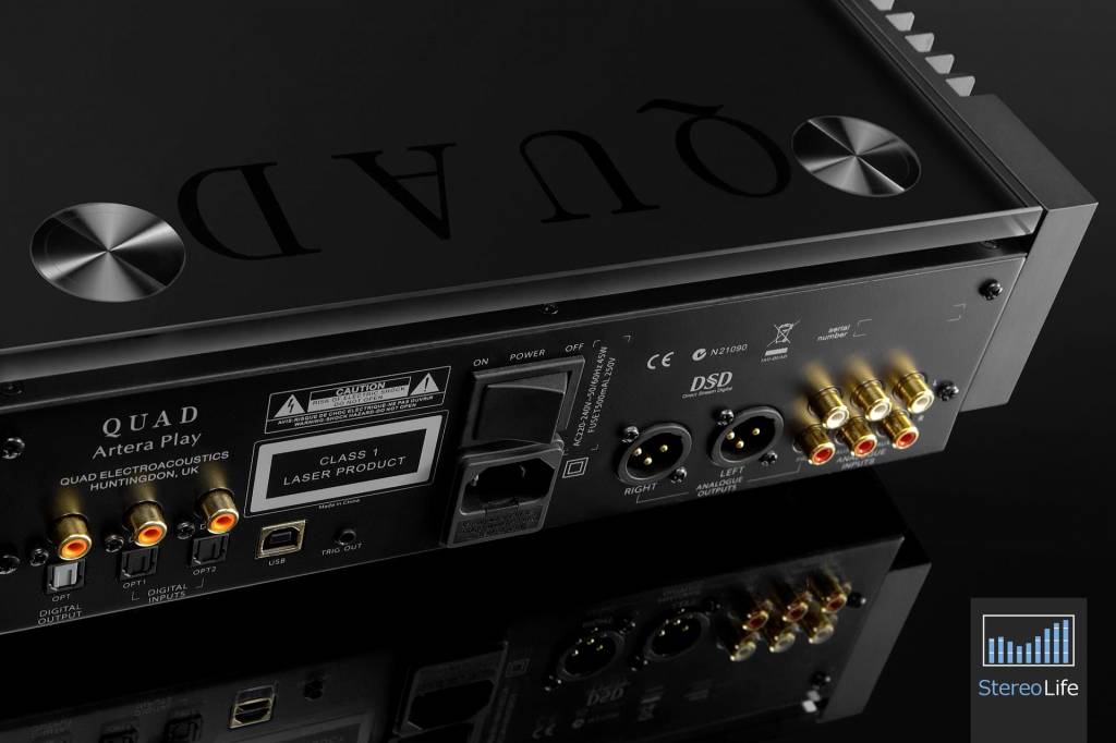Choć opisywany komplet dał początek serii Artera, stając się jej wizytówką, producent nie zastosował tutaj żadnych trików, które albo zachęciłyby klientów do kupna całego zestawu i poszerzanie go o kolejne elementy z tej samej rodziny, albo wręcz zmusiły ich do łączenia odtwarzacza z firmową końcówką mocy. Każdy z opisywanych modeli możemy więc podłączać i oceniać osobno. Może nie jest to nic nadzwyczajnego, ale niejedna firma zamontowałaby z tyłu jakieś dziwne, nietypowe gniazda, ale tu wszystko wygląda normalnie. Fajnie byłoby tu zobaczyć układ, który po wybudzeniu Artery Play z trybu czuwania załączy wyciszenie, następnie odczeka kilka sekund i da Arterze Stereo sygnał do startu. Zamiast tego jest zwykły trigger. Dobre i to, bo inaczej końcówkę mocy można by było włączyć tylko ręcznie. Opisywany system z jednej strony prezentuje się mega nowocześnie, z drugiej zaś charakteryzuje się klasyczną prostotą. Zupełnie jakby inżynierowie Quada odrzucili wszystko, co uznali za ryzykowne i nie do końca sprawdzone. Futurystyczny wygląd i doskonałe materiały - tak. Funkcje sieciowe, sterowanie z poziomu aplikacji i inne gadżety - nie. Nie da się także nie dostrzec oczywistych nawiązań do legendarnych konstrukcji sprzed ponad czterdziestu lat. Ten wszechobecny minimalizm, te długie, całkowicie kanciaste radiatory, to oldschoolowe logo przypominające zaokrąglone, pochylone czcionki szyldów, jakie widuje się jeszcze na warszawskiej Woli i Pradze, a także w Śródmieściu i na Powiślu (zakład ślusarski, renowacja mebli, futra, naprawy maszyn do szycia). Jeżeli ktoś nie wie, czego szukać, taki system będzie dla niego tylko kolejnym, bardzo ładnym zestawem stereo, pod którym mogłaby się podpisać dowolna firma. Jeżeli natomiast znamy historię Quada i wiemy, jak wyglądały jego starsze przedwzmacniacze i końcówki mocy, nawiązania do tej stylistyki znajdziemy od razu.