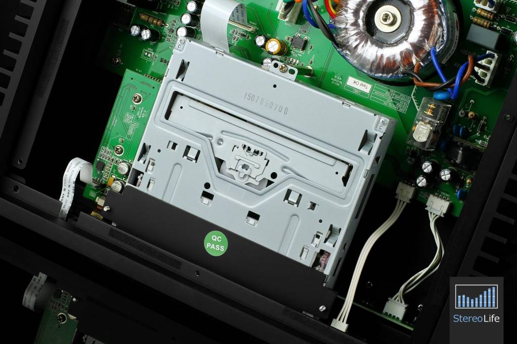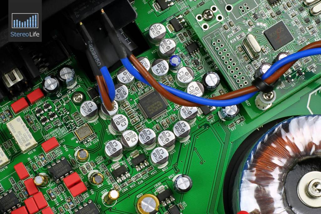 Quad Artera Play to odtwarzacz płyt kompaktowych z przetwornikiem cyfrowo-analogowym i przedwzmacniaczem. Jego obudowa to w tej cenie prawdziwy ewenement. Pomijając już ozdobę w postaci zdejmowanej tafli szkła na własnych, dużych nóżkach, niemal cały widoczny z zewnątrz korpus wykonano z grubych na kilkanaście milimetrów płatów aluminium. Do tego dochodzi obniżona postawa wykonana w ten sam sposób oraz stalowa pokrywa z licznymi otworami wentylacyjnymi. Całość jest niezwykle sztywna i sprawia wrażenie niezniszczalnej. Umieszczone po bokach radiatory prawdopodobnie pełnią w tym modelu wyłącznie funkcję ozdobną, ale dzięki nim odtwarzacz idealnie pasuje do dedykowanej końcówki mocy. Z boku taki zestaw wygląda jak jedno urządzenie przedzielone taflą dymionego szkła i niewielką, poziomą poprzeczką. Niewykluczone zresztą, że przy odrobinie szczęścia udałoby się idealnie scalić je ze sobą, ale - w obawie o porysowanie wykończonych czarnym lakierem klocków - nie próbowałem. Wnętrze Artery Play jest zabudowane elektroniką po same brzegi. Większość układów zamontowano na jednej płytce drukowanej zajmującej niemal całą podstawę urządzenia. Wycięto w niej nawet otwór, w którym zadomowił się średniej wielkości transformator toroidalny Noratela. Oddzielną płytkę zajmuje interfejs obsługujący wejścia cyfrowe, zbudowany na bazie mikrokontrolera XMOS 8U6C5 i dwóch niezależnych zegarów obsługujących częstotliwości próbkowania 44,1 i 48 kHz oraz ich wielokrotności. Zastosowane komponenty pozwalają na odtwarzanie plików hi-res w jakości do 32 bit/384 kHz i DSD64/128/256 za pomocą wejścia USB. W celu obniżenia błędów jitter, mechanizm szczelinowy buforuje dane odczytane z płyty, a następnie przekazuje je w trybie asynchronicznym do 8-kanałowego DAC-a ESS Sabre ES9018. Sekcję analogową zbudowano na bazie układów scalonych. Regulację głośności powierzono kości PGA4311U Burr-Browna. W torze zobaczymy także wzmacniacze operacyjne N5532 i OPA2134PA, kondensatory Wimy i wysokiej jakości rezystory SMD.