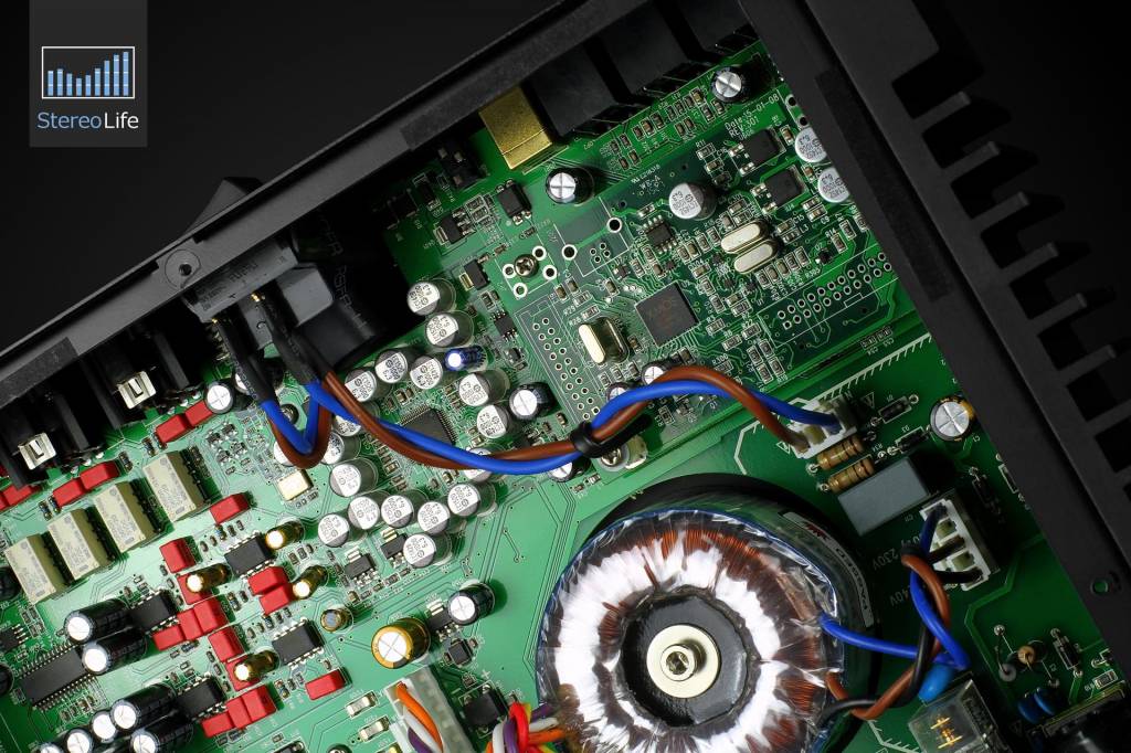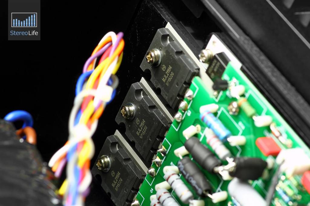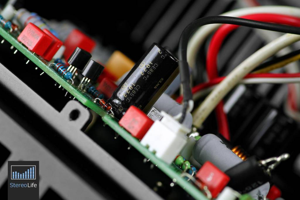 Quad Artera Stereo to stereofoniczna końcówka mocy wykorzystująca technologię Current Dumping, opracowaną przez założyciela firmy, Petera Walkera w 1975 roku. Zasadę jej działania i korzyści płynące z tego rozwiązania omówiłem już wyżej. Jeżeli ktoś jest zainteresowany, w broszurce dostępnej na stronie producenta zamieszczono uproszczony schemat Artery Stereo, ale w sieci można znaleźć także rozmaite, często nawet bardzo obszerne artykuły na temat tego systemu. Ciekawe czy Current Dumping ma coś wspólnego z opracowaną przez Benta Holtera (Hegel) technologią SoundEngine lub stosowanym we wzmacniaczach Luxmana układem ODNF (Only Distortion Negative Feedback). Wydaje się, że wszystkie trzy patenty działają podobnie, a przynajmniej tyle można wyczytać z dostępnych materiałów. Quad zapewnia, że jego projektanci tworzyli serię Artera pamiętając o korzeniach i doświadczeniu firmy, ale przenosząc je na grunt nowoczesnych konstrukcji. Artera Stereo oferuje moc 140 W na kanał przy 8 Ω, jednak warto zwrócić uwagę, że jest to wartość RMS. Innych wyników nie udało mi się znaleźć, w związku z czym ciężko powiedzieć coś konkretnego o mocy oddawanej na przykład przy 4 Ω. Wnętrze Artery Stereo to - podobnie, jak jej tylna ścianka - piękny przykład niemal niezakłóconej symetrii. Brytyjska końcówka to układ dual-mono ze wspólnym transformatorem. Ulokowany w samym centrum obudowy zasilacz bazuje na dużym toroidzie dostarczonym przez Noratela, dwóch mostkach prostowniczych i czterech kondensatorach Samwha o pojemności 10000 µF każdy. Płytki zawierające właściwe układy wzmacniające zamontowano pionowo po bokach. W każdym kanale pracują trzy pary tranzystorów ON Semi MJL21194, przykręcone oczywiście do dużych radiatorów. Wentylację poprawiają także otwory wycięte zarówno w podstawie, jak i pokrywie urządzenia. Jeśli chodzi o parametry, warto zwrócić uwagę na stosunek sygnału do szumu (115 dB), niskie zniekształcenia (0,003%) i płaskie pasmo przenoszenia. Zamiast podawać przedział częstotliwości w hercach z odchyłką mierzoną w decybelach, Quad robi dokładnie odwrotnie. Z tabeli danych technicznych wynika, że w zakresie od 20 Hz do 20 kHz zobaczymy maksymalnie 0,5-dB spadek, natomiast przyjmując standardowe odchylenie -3 dB, górna granica pasma przenoszenia przesunie się aż do 70 kHz.