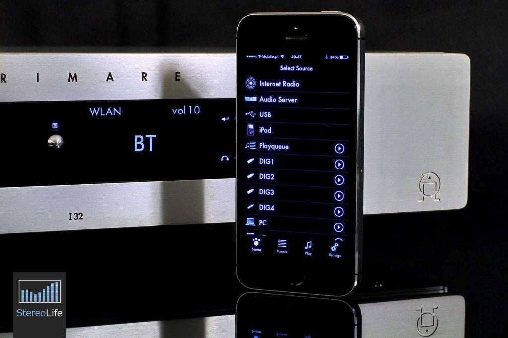 Może spodziewacie się, że tak zaawansowane urządzenie, będące w istocie trzema lub nawet czterema klockami w jednej obudowie, będzie trudne w podłączeniu i instalacji. Nic bardziej mylnego. Szwedzi zadbali o to, aby I32 z modułem MM30 nie zachowywał się jak mieszanka elementów przeniesionych żywcem z jakichś innych modeli i połączonych ze sobą byle jak. Po wyjęciu integry z pudełka i ustawieniu jej na górnej półce stolika, musiałem tylko podłączyć kable głośnikowe oraz zasilający, wkręcić antenkę Wi-Fi, wprowadzić hasło sieci i już mogłem przystąpić do wygrzewania, a także skorzystać z aplikacji Primare App, którą miałem już zainstalowaną na iPhonie po teście systemu PRE60 + A60. Pilota zdalnego sterowania nawet nie wyjmowałem z opakowania - uczyniliśmy to dopiero podczas sesji zdjęciowej. Aplikacja pozwala kontrolować głośność, źródło dźwięku i kilka innych przydatnych funkcji, a przede wszystkim - zarządzać odtwarzaniem muzyki zgromadzonej na urządzeniach podłączonych do naszej sieci. Jeżeli więc macie sporą kolekcję plików na komputerze, do szczęścia wystarczy Wam smartfon lub tablet z systemem iOS lub Android. Aplikacja tak naprawdę zarządza już wszystkim.