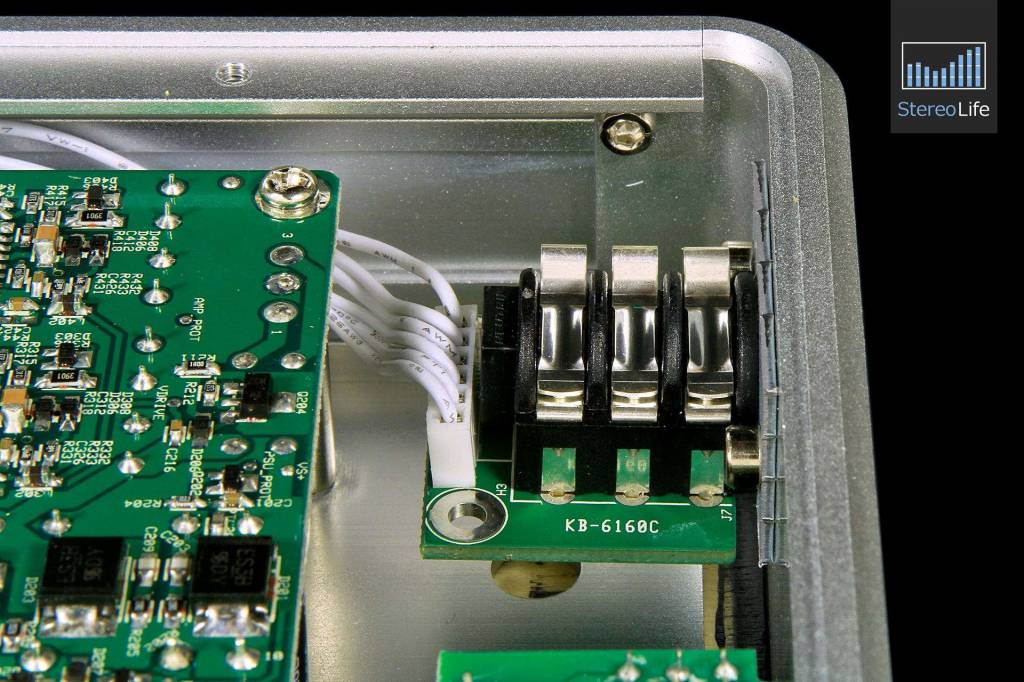 Po zdemontowaniu dolnej płyty zobaczymy niestety niewiele, może poza tym, że - zgodnie z przewidywaniami - wnętrze Sprouta jest szczelnie zabudowane elektroniką. Większość układów zmontowano na dwóch płytkach, które możemy niestety podziwiać tylko od dołu, ponieważ każda z nich została przykręcona do płyty wierzchniej za pośrednictwem metalowych tulejek. Ze strony producenta dowiemy się, że przetwornik oparto na układach Wolfsona przyjmujących sygnału do 24 bit/192 kHz, a wzmacniacz słuchawkowy zbudowano na bazie elementów dyskretnych, osiągając w ten sposób bardzo niską impedancję wyjściową - poniżej 0,3 Ω. Moc na wyjściu słuchawkowym dochodzi do 1 W przy obciążeniu 16-omowym i 200 mW przy 300 omach. Do głośników Sprout posyła natomiast 32 W przy ośmiu omach i 50 W przy czterech.