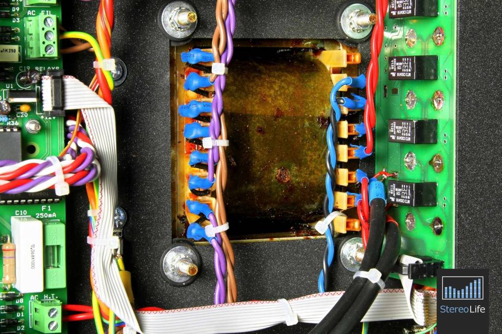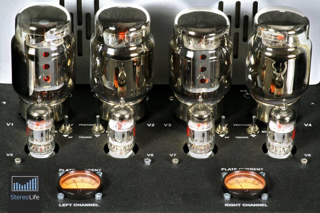 Z nowym śrubokrętem odkręcanie poszło już szybko i sprawnie, a moim oczom ukazały się ustawione w jednym rzędzie lampy mocy 6550 oraz cztery podwójne triody 12AT7 chętnie stosowane przez wiele firm w sekcji przedwzmacniacza. Pomiędzy nimi w każdym kanale zainstalowano przełączniki do zmiany trybu pracy z triody na pentodę lub odwrotnie. Obok znajdują się, również osobno na każdy kanał, przełączniki służące do wyboru wzmocnienia - możemy ustawić niski lub normalny poziom. O ile tryb triodowy i pentodowy jest dla mnie oczywisty, o tyle funkcja feedbacku trochę mnie zaintrygowała. Na jej temat dowiedziałem się tyle, że najlepiej jest poeksperymentować i sprawdzić jak system gra na jednym ustawieniu, a jak na drugim. Nie ma jednak co oczekiwać jakichś niezwykłych zmian - przełączniki można potraktować bardziej jako dodatek pozwalający odrobinę podciągnąć brzmienie pod nasz gust. Z pozostałych atrakcji mamy jeszcze umieszczone na górze wloty, które umożliwiają nam ustawienie prądu spoczynkowego lamp mocy. Operacja jest całkiem prosta, bo pod lampami 12AT7 umieszczono podświetlane wskaźniki wychyłowe, oczywiście również osobne dla każdego kanału. Wszystko to bardzo przypomina inny testowany przez nas wzmacniacz - Unison Research Triode 25. Tam również użytkownik ma do dyspozycji przełączniki trybu pracy i wzmocnienia, a regulacja biasu odbywa się prawie tak samo. Z tą różnicą, że włoska integra ma jedno okienko z "wycieraczką", które osobnym hebelkiem przypisujemy do lewego lub prawego kanału.