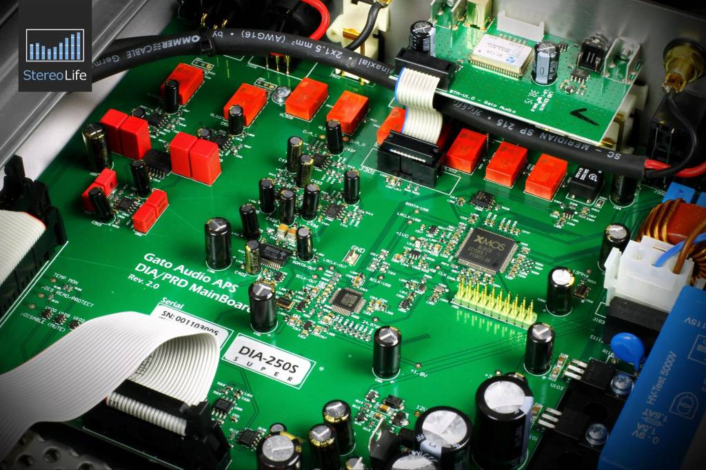 Gato Audio DIA-250S to wzmacniacz zintegrowany, którego nazwa może wydawać się skomplikowana, ale tak naprawdę łatwo ją rozszyfrować. Pierwsze litery w jego symbolu to najprawdopodobniej skrót od Digital Integrated Amplifier, liczba "250" odpowiada maksymalnej mocy oddawanej przy 8 Ω, a dopisek "S" oznacza, że mamy do czynienia z udoskonaloną wersją pierwowzoru tego urządzenia czyli produkowanego wcześniej modelu DIA-250. Z zewnątrz obie wersje zbytnio się od siebie nie różnią, ale producent informuje, że zmiany objęły przede wszystkim układy elektroniczne i rozplanowanie podzespołów wewnątrz obudowy. Wśród najważniejszych udoskonaleń znalazło się całe zasilanie ze zoptymalizowanym filtrem sieciowym, nowy stopień wejściowy i ulepszony stopień wyjściowy, zaprojektowane od nowa stopnie analogowe w przetworniku cyfrowo-analogowym i praktycznie cały tor sygnału cyfrowego. W odróżnieniu od swojego starszego brata, DIA-250S ma także moduł Bluetooth z obsługą aptX. Na stronie producenta można dowiedzieć się, że wszystkie cyfrowe wejścia skalowane są do rozdzielczości 24 bit/192 kHz. Szkoda tylko, że nie wykorzystano DAC-a obsługującego pliki DSD. Wnętrze duńskiego wzmacniacza wygląda dość tajemniczo, ale też bardzo schludnie. Większość układów elektronicznych umieszczono na jednej płytce drukowanej zajmującej mniej więcej 2/3 powierzchni w środku obudowy. Owa płyta główna jest najwyraźniej wspólna dla wzmacniaczy zintegrowanych z serii DIA i przedwzmacniaczy PRD. Znalazły się na niej dwie naklejki - jedna z symbolem testowanego modelu, a druga z jego numerem seryjnym i kodem kreskowym. Widać tu nie tylko moduł przedwzmacniacza z niezależnym stopniem zasilającym, ale także przetwornik oparty na kości PCM1794 Burr-Browna. Główną sekcję zasilania, końcówki mocy i część układów generujących większe zniekształcenia zamknięto natomiast w srebrnej klatce przykręconej do podstawy urządzenia w pobliżu przedniej ścianki. Układy wzmacniające zostały opracowane we współpracy z firmą Pascal Audio specjalizującą się w gotowych modułach stopni wyjściowych. Rozwiązanie bazuje na technice modulacji szerokości impulsu (PMW). Filtrowaniem wysokich częstotliwości będących efektem działania impulsowych stopni końcowych zajmują się pasywne układy składające się z cewki i kondensatora. Jeśli chodzi o parametry, DIA-250S oddaje 250 W na kanał przy 8 Ω i podwaja tę moc przy 4 Ω. Stosunek sygnału do szumu to ponad 110 dB, zniekształcenia utrzymywane są na poziomie poniżej 0,01%, a pasmo przenoszenia rozciąga się od 20 Hz do 20 kHz ze spadkiem zaledwie 0,5 dB. Przy standardowej odchyłce 3 dB otrzymalibyśmy wynik 2 Hz - 70 kHz.