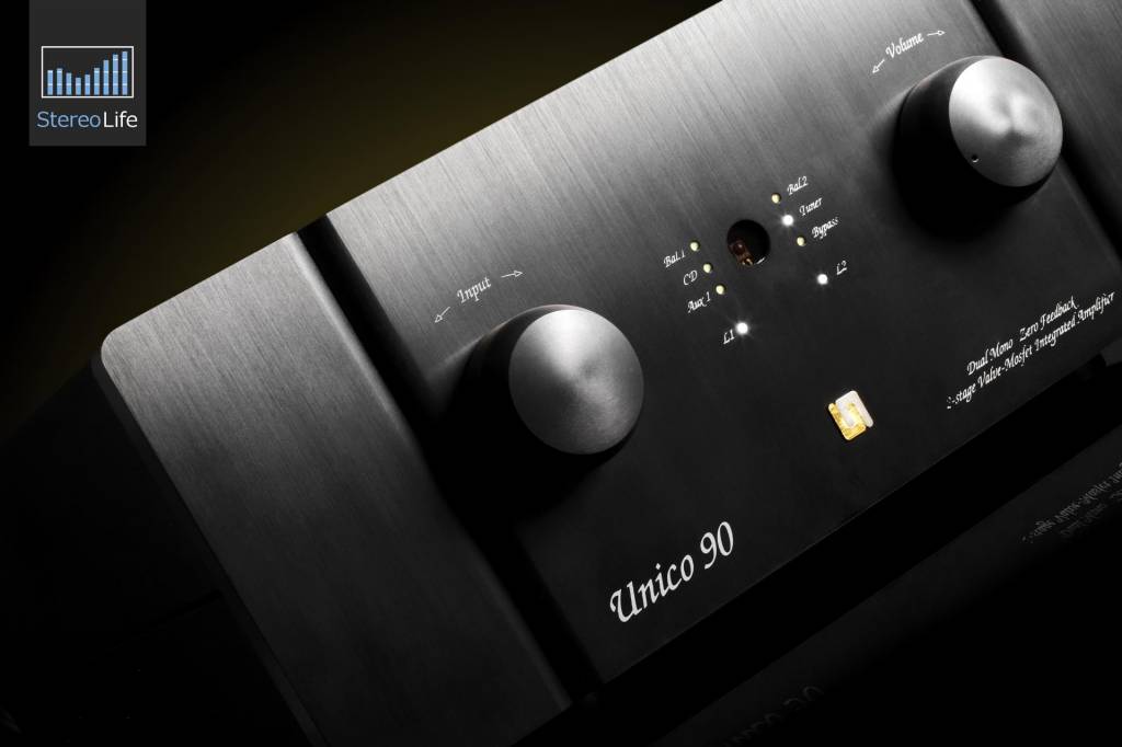 Unison Research Unico 90 to hybrydowy wzmacniacz zintegrowany. Podobnie, jak najbardziej szlachetne wzmacniacze lampowe, integra wykorzystuje tylko dwa stopnie wzmocnienia. Istota układu Unico 90 zawarta jest w jego hybrydowej strukturze. Jak zapewnia producent, wszystkie korzyści płynące z takiej konstrukcji, w tym cały charakter wzmacniacza, jest określony przez stopień lampowy zbudowany na lampach ECC83 w układzie push-pull totem-pole i i ECC81 w równoległym układzie totem-pole. Ważące dokładnie 20 kg urządzenie prezentuje się wyjątkowo potężnie, co znajduje odbicie w parametrach. Unico 90 oferuje moc wyjściową na poziomie 100 W przy impedancji 8 Ω i 160 W na kanał przy 4 Ω. Zapewnia przy tym dość imponujące, jak na wzmacniacz hybrydowy, pasmo przenoszenia - od 12 Hz ze spadkiem 1 dB do 45 kHz mierzonych przy spadku 3 dB. Stopień wejściowy pracuje w czystej klasie A, a jeszcze ciekawsze jest to, że ze względu na swoją szczególną konstrukcję, potrafi wzmocnić sygnał wejściowy na tyle, że może on już bezpośrednio wysterować stopień mocy. W każdym kanale zobaczymy tu trzy pary tranzystorów HEXFET pracujących w klasie AB. Warto podkreślić, że Unico 90 używa tylko lokalnego sprzężenia zwrotnego. Globalne sprzężenie zwrotne jest zerowe. Podobnie, jak wszystkie urządzenia marki Unison Research, opisywana integra jest projektowana i produkowana w całości we Włoszech.